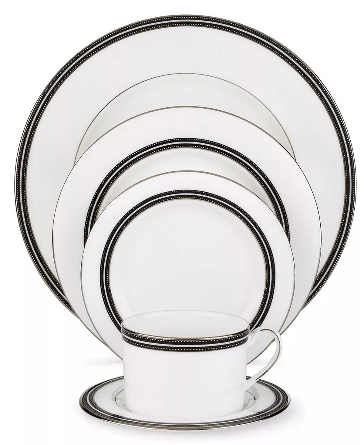 In the hands of kate spade, black and white is anything but basic. Dancing ebony stitched stripes provide a stunning contrast to the pristine china of the Union Street cup.