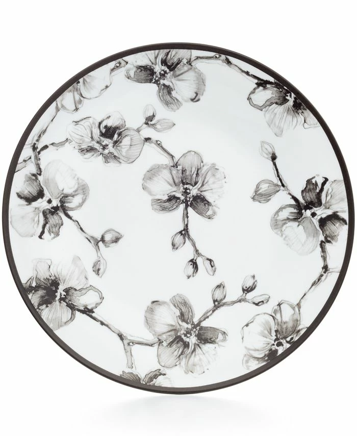 Compose a striking arrangement with the Black Orchid salad plate by Michael Aram. Fine white Limoges porcelain flourishes under a dark watercolor motif inspired by foliage from around the world.
