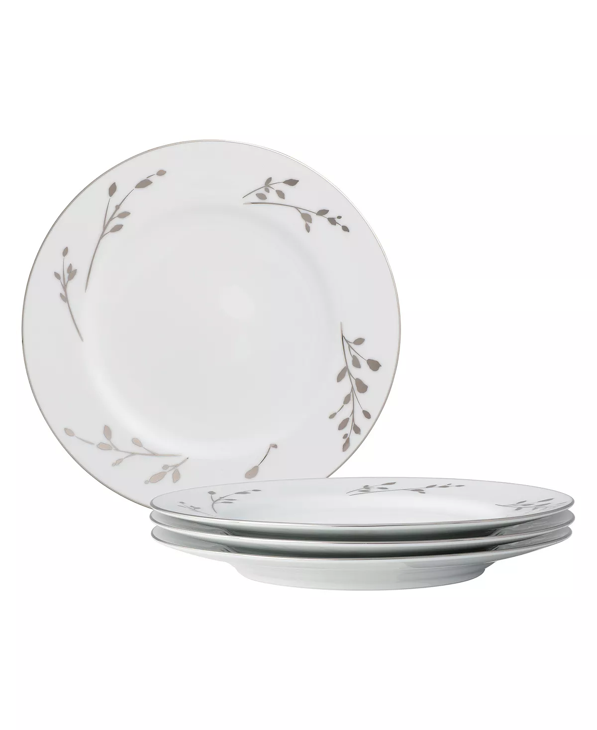 Birchwood brings modern elegance to the table. The delicate branches and budding twigs in platinum brings a natural element to a modern white porcelain dinnerware collection. The edge of each piece is adorned with a thin platinum band.