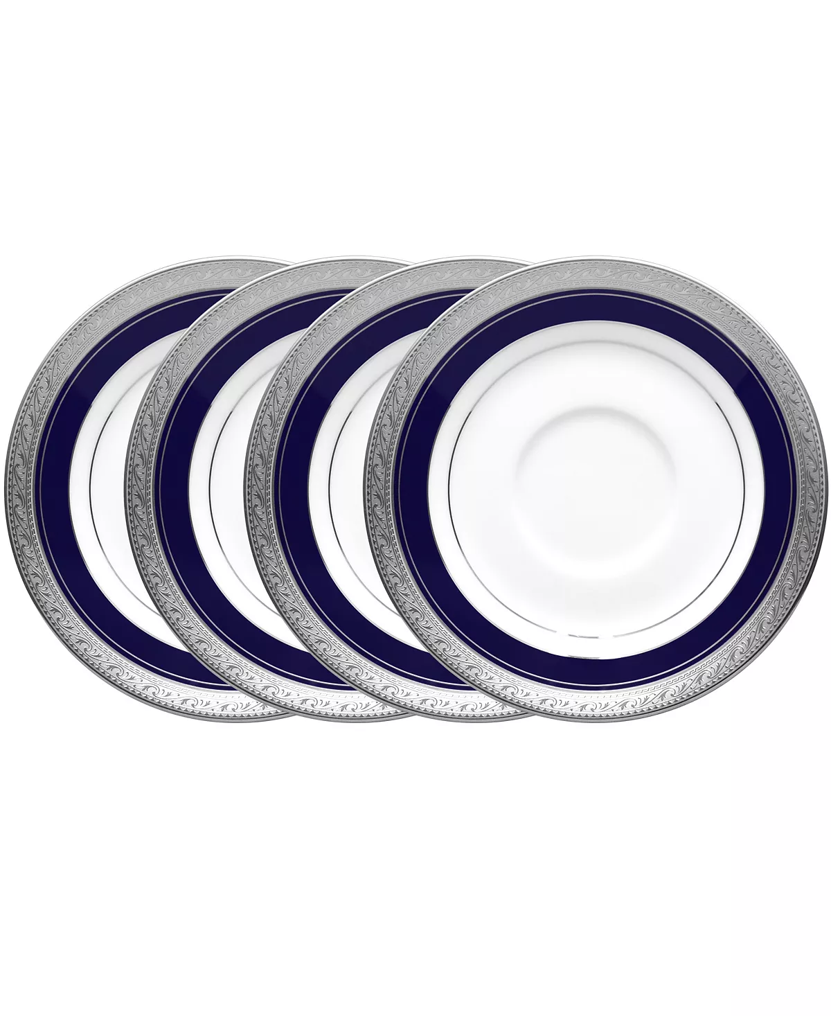 Crestwood cobalt platinum brings sophisticated elegance to the table. This stunning pattern features crisp bright white porcelain, paired with an inner band of deep cobalt blue for a look of elegant simplicity. The exterior platinum band is etched with a design of scrolling leaves.