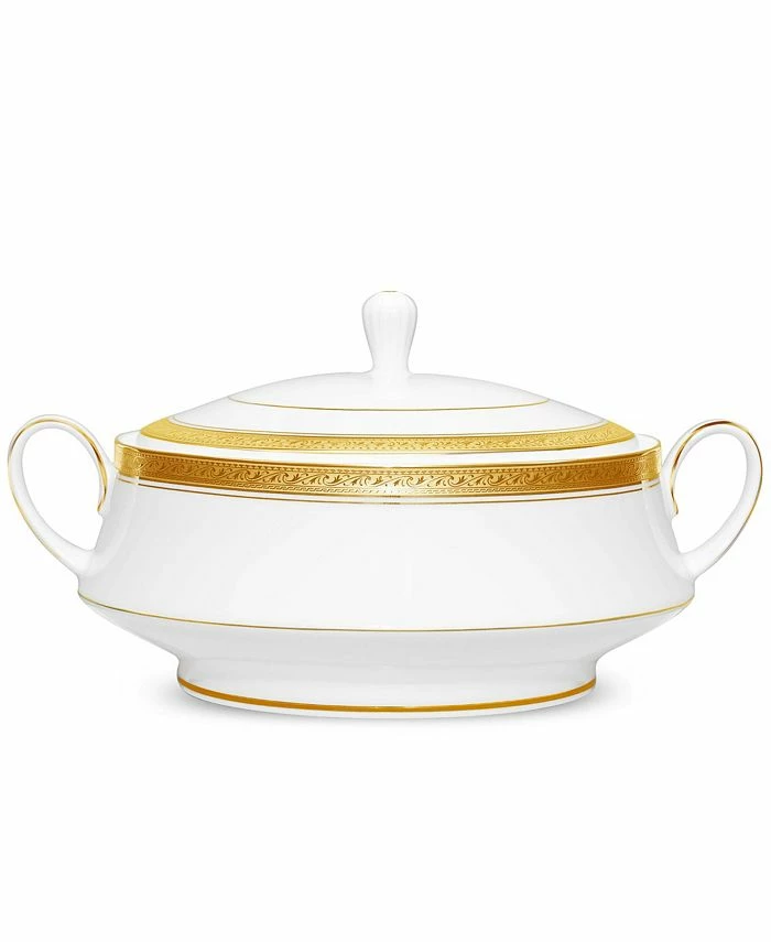 Crestwood Gold has a white body rimmed with a wide etched gold band to present a look of elegant simplicity. Gold Band, Dishwasher Safe, White Porcelain.