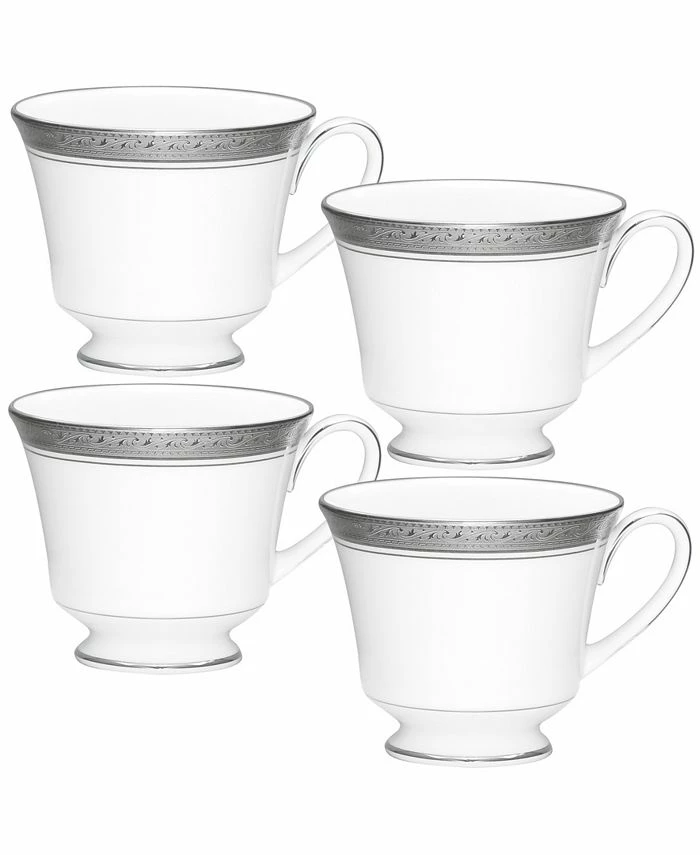 Crestwood platinum brings sophisticated elegance to the table. This stunning pattern features crisp bright white porcelain, paired with a platinum band for a look of elegant simplicity. The exterior platinum band is etched with a design of scrolling leaves.