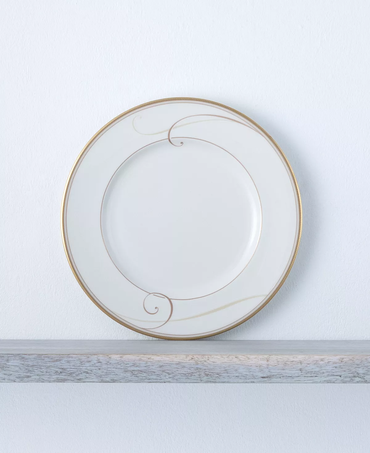 Golden wave brings elegance to the table. Golden wave features a scroll motif that is interpreted as waves. Washing against the rim of the plate, the golden waves create a bold yet elegant presentation.
