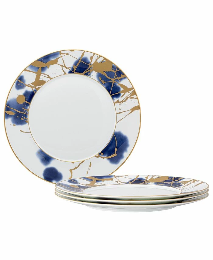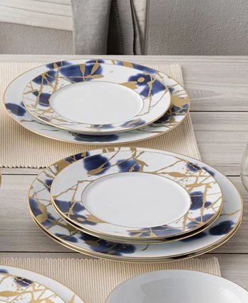 Jubilant days gold is an abstract celebration, featuring a base of random swatches of cobalt blue, and splashes of shimmering gold-tone on white porcelain. Jubilant days gold offers place setting components as well as an array of serving pieces and accessories.