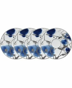 Jubilant days platinum is an abstract celebration, featuring a base of random swatches of cobalt blue, and splashes of shimmering platinum on white porcelain. Jubilant days platinum offers place setting components as well as an array of serving pieces and accessories.