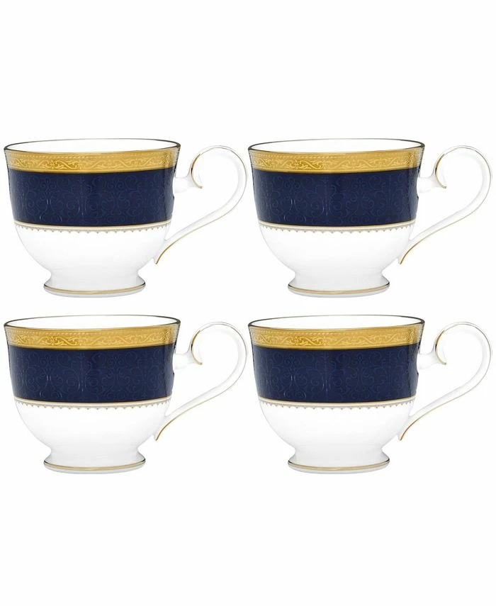 Odessa cobalt gold features a wide, etched gold-tone band, coupled with a wide inner band of delicate soft blue floral scrolls over a deep, cobalt blue. Crafted in fine bone China, Odessa cobalt gold offers place setting components as well as an array of serving pieces and accessories.