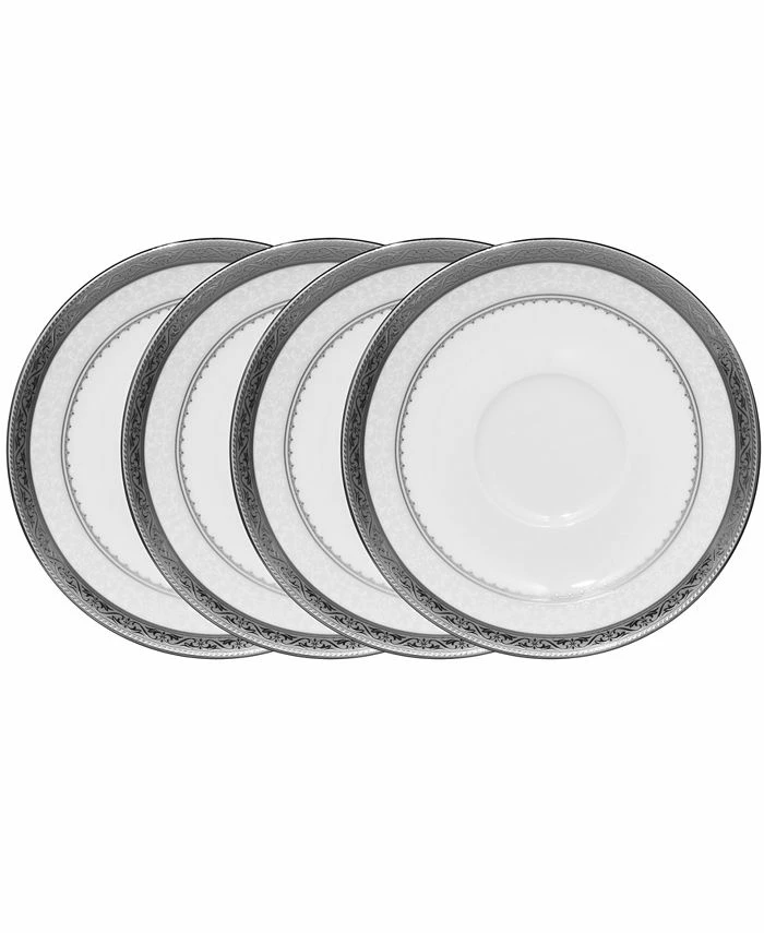 Odessa platinum features a wide, etched platinum band, coupled with an inner band of delicate white floral over a whisper of dove gray. Crafted in fine bone China, Odessa platinum offers place setting components as well as an array of serving pieces and accessories.