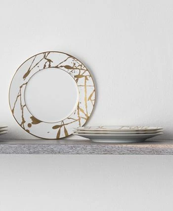 Raptures gold is a jubilant presentation of gold-tone metallic splashes. The design evokes modern art styling on premium white porcelain. Raptures gold offers traditional place setting components as well as additional items and serving pieces.