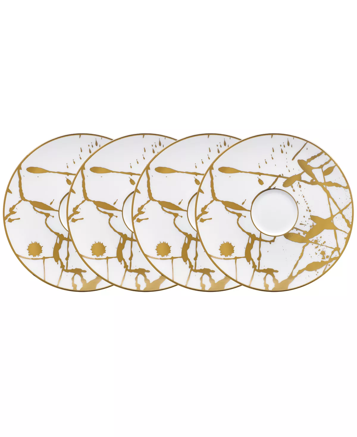 Raptures gold is a jubilant presentation of gold-tone metallic splashes. The design evokes modern art styling on premium white porcelain. Raptures gold offers traditional place setting components as well as additional items and serving pieces.