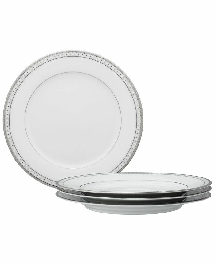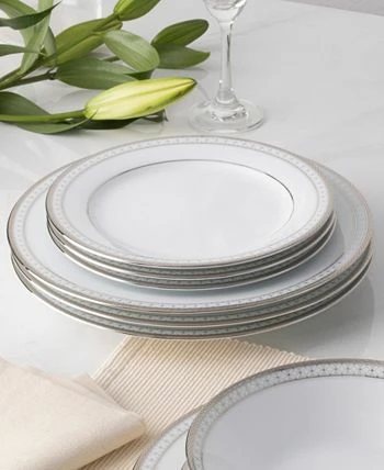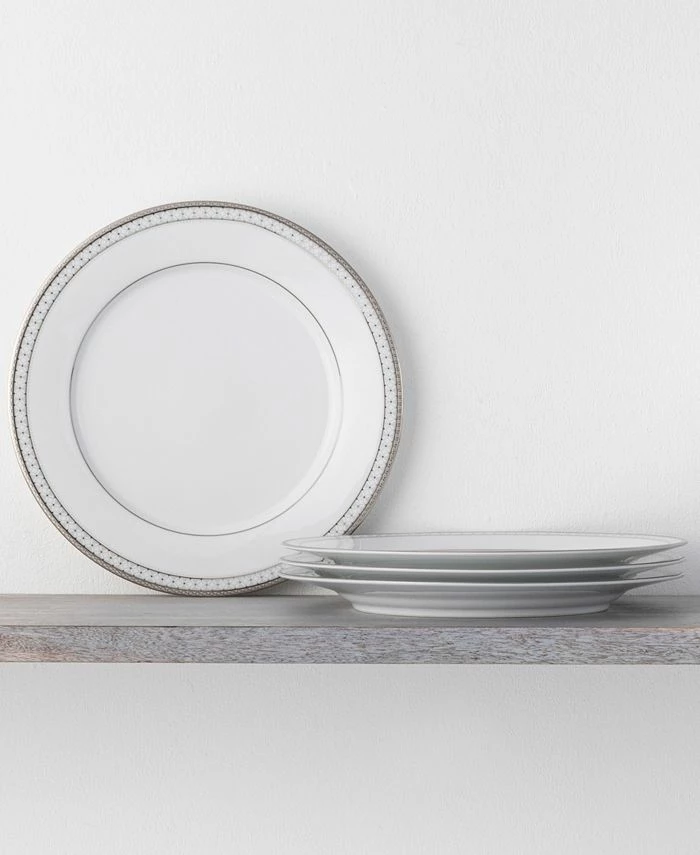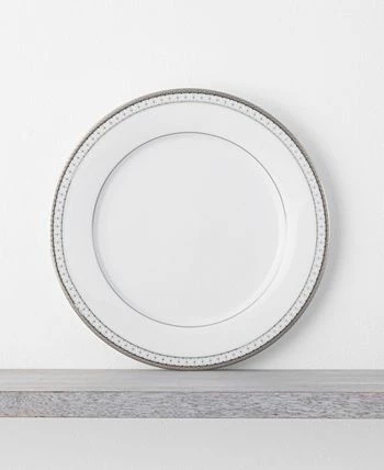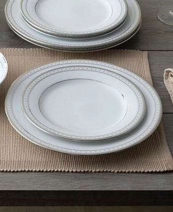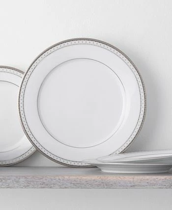 Rochester platinum features a circular grid, paired with platinum-on-platinum embossing, white embossing, and mica accents, all on classic white porcelain.
