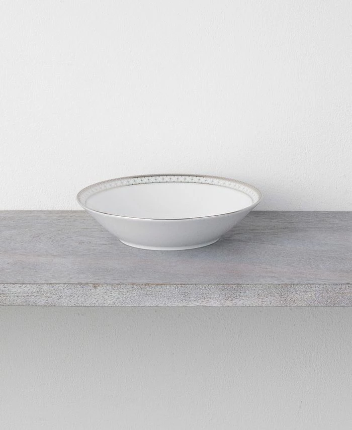 Rochester platinum features a circular grid, paired with platinum-on-platinum embossing, white embossing, and mica accents, all on classic white porcelain.