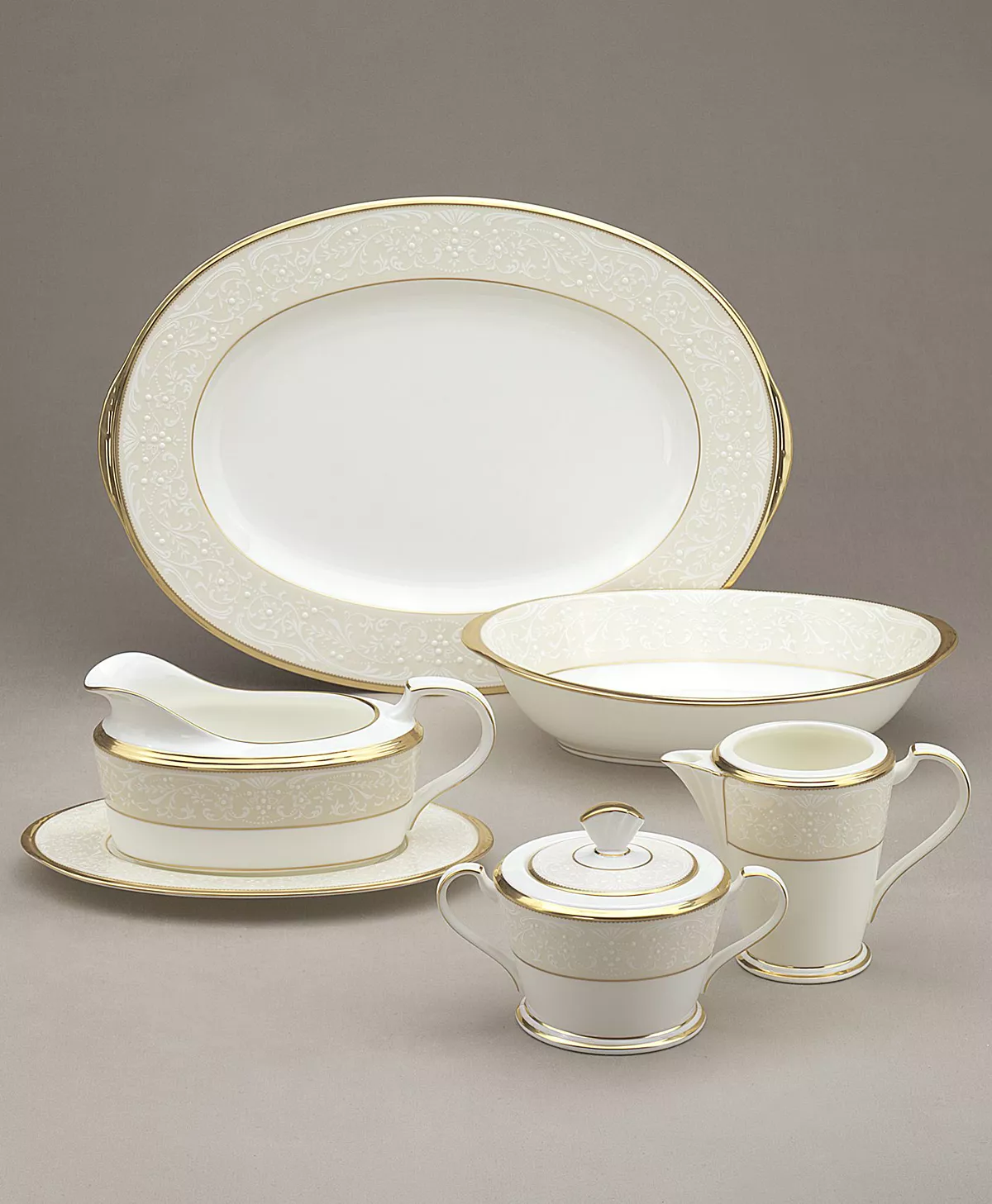 For more than 90 years, Noritake has made an art of setting the table. Whether you host gala home soirees or prefer to dine casually with the family, Noritake has a perfect tabletop setting for you. The formal White Palace place settings collection is a masterpiece of textural contrast, combining smooth white bone china with a band of embossed, gold-trimmed detailing, lavishly finished with a polished gold rim.